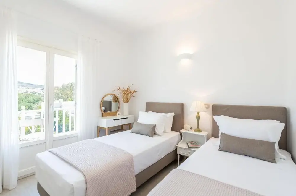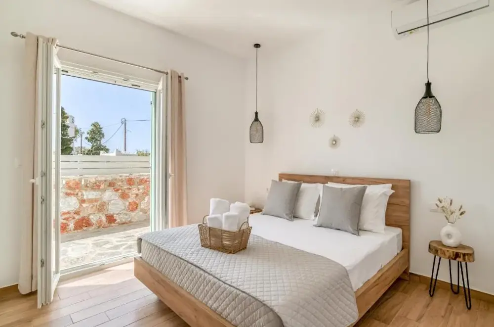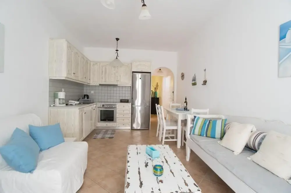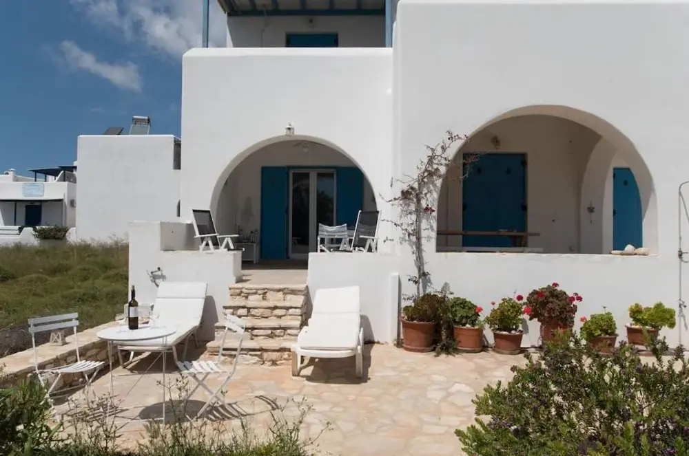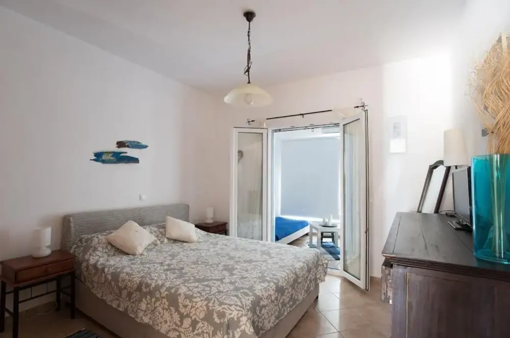 More information about Aegean View Beach ApartementMaria's Village Two Bedroom House 5 offers a tranquil retreat in Aliki, Greece, situated within walking distance of the beach and local attractions. This two-bedroom property provides direct access to a private section of the stunning beach in Paros, ideal for relaxation. Guests enjoy panoramic sea views from the terrace, overlooking the turquoise waters and surrounding olive groves.