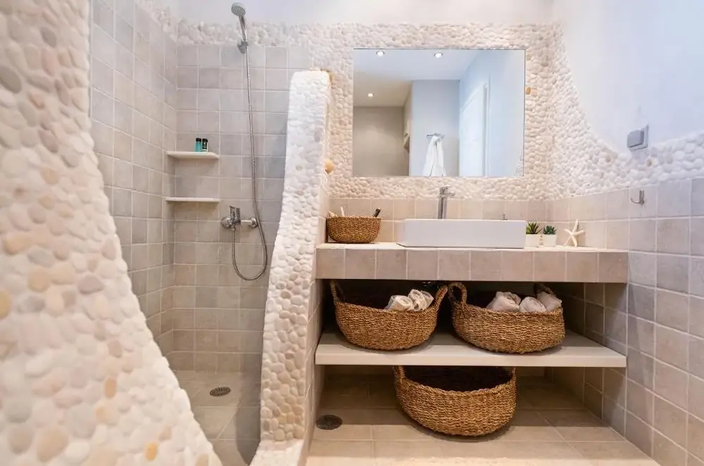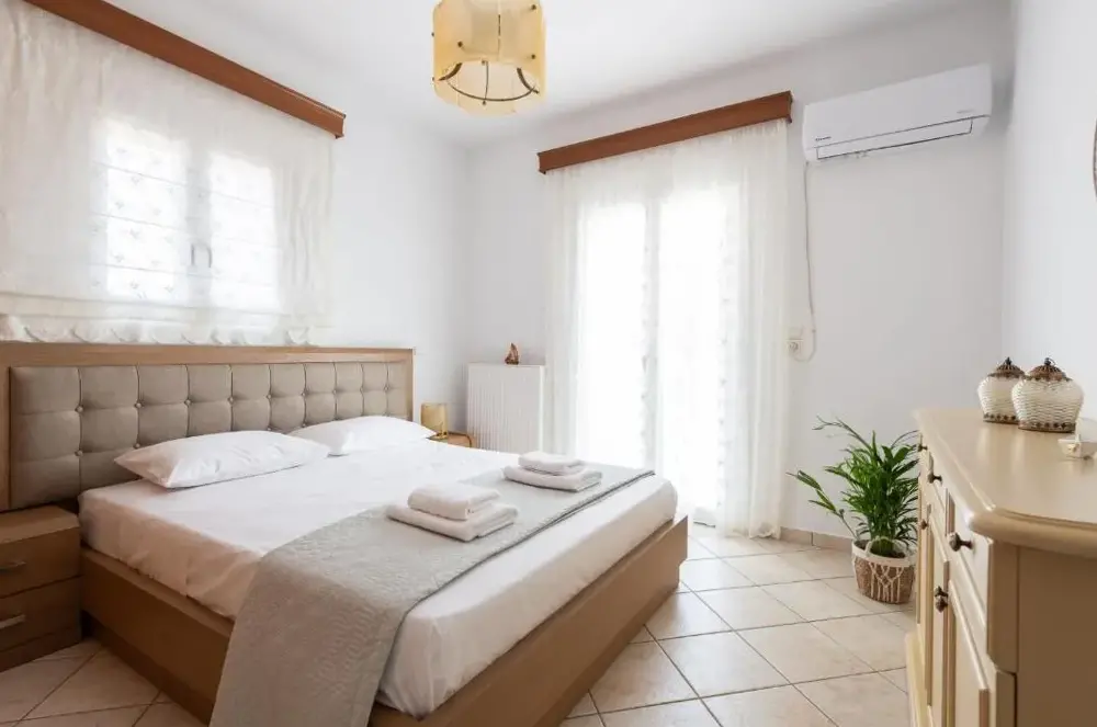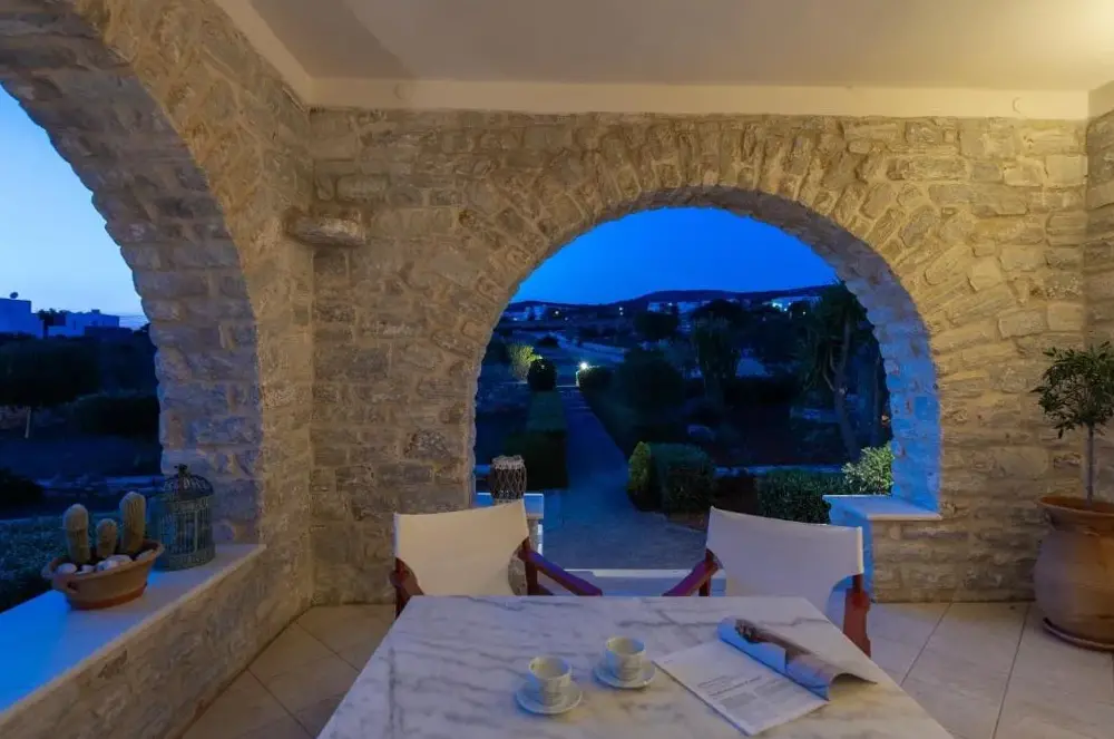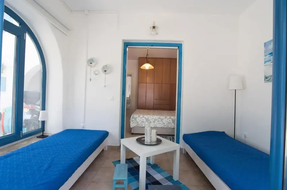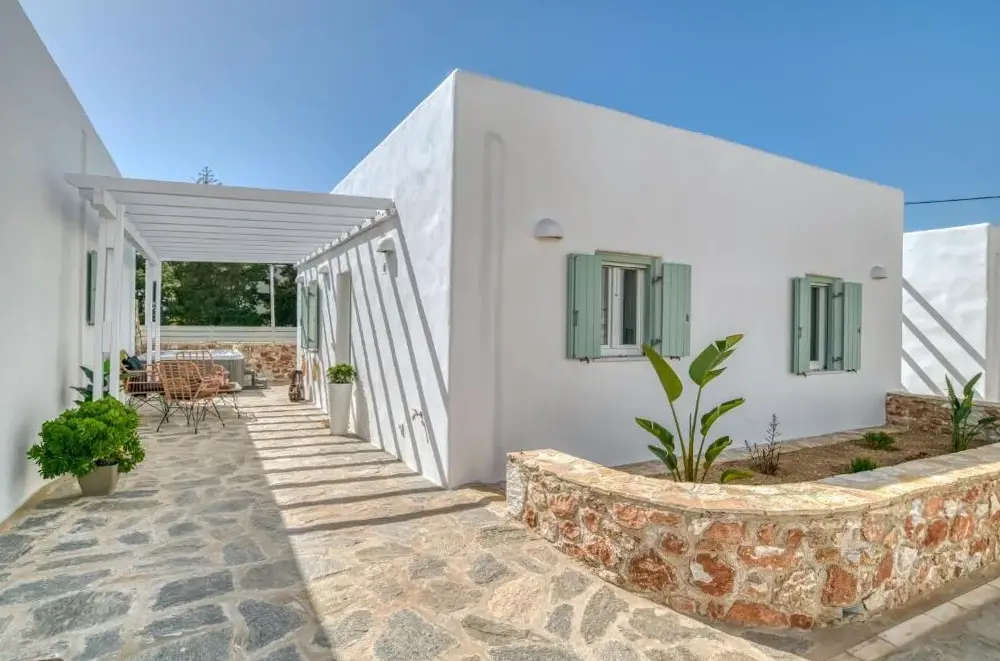 More information about Aegean View Beach ApartementMaria's Village Two Bedroom House 5 offers a tranquil retreat in Aliki, Greece, situated within walking distance of the beach and local attractions. This two-bedroom property provides direct access to a private section of the stunning beach in Paros, ideal for relaxation. Guests enjoy panoramic sea views from the terrace, overlooking the turquoise waters and surrounding olive groves.
