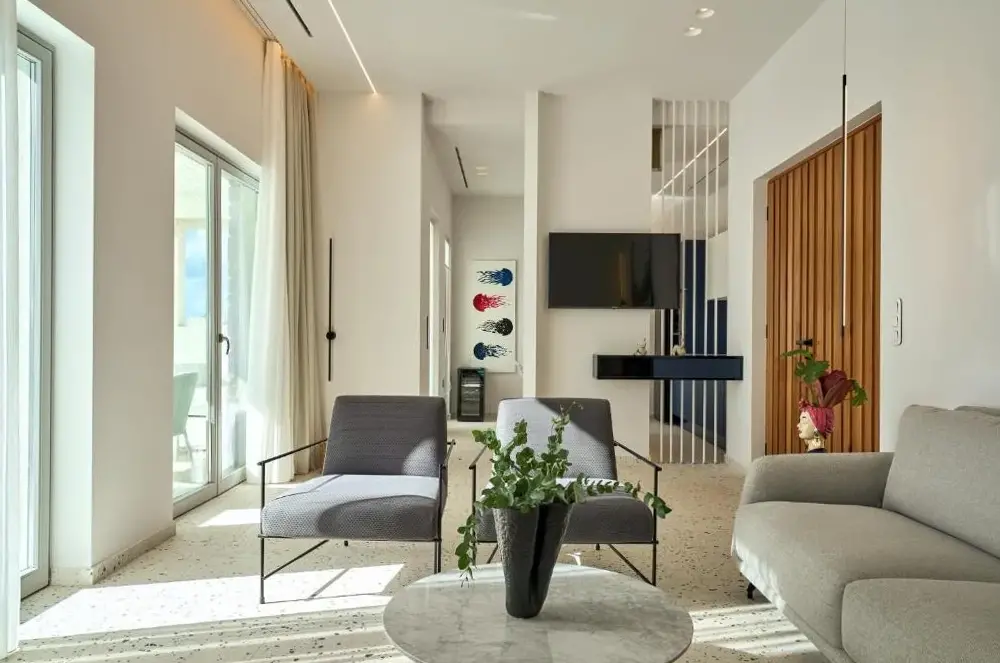 More information about Mikon Luxury VillaThe Aegean View Beach Apartment offers convenient access to Aliki Beach, located just 100 meters away. Guests can enjoy free parking and complimentary WiFi while staying in this family-friendly unit. The property features non-smoking rooms and spacious family accommodations designed for comfort.