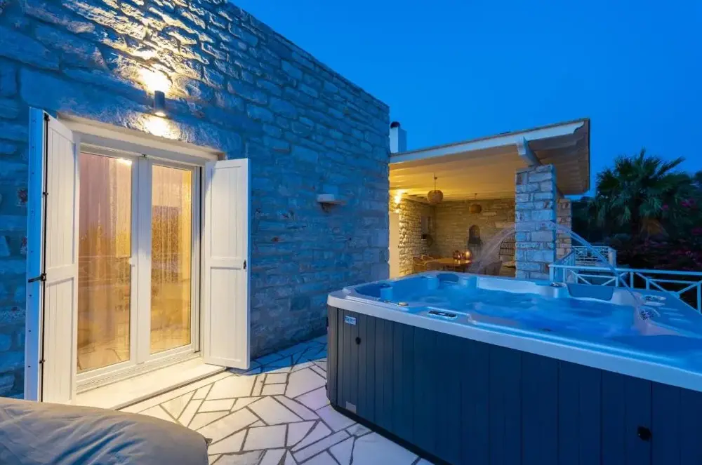 More information about Sun and Salt 3bedroom HouseLuxury Villa Seafront offers a beachfront retreat located in Makryá Mýti, Aliki, Greece. The villa features free parking, non-smoking rooms, and complimentary airport shuttle service. Guests can enjoy access to an outdoor swimming pool and family-friendly accommodations. Nearby attractions include Voutakos Beach just 1.5 kilometers away and Pundo Beach Club within five kilometers.
